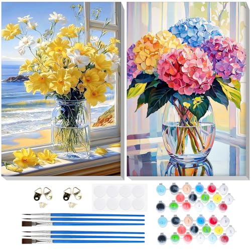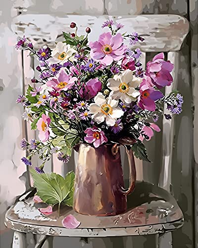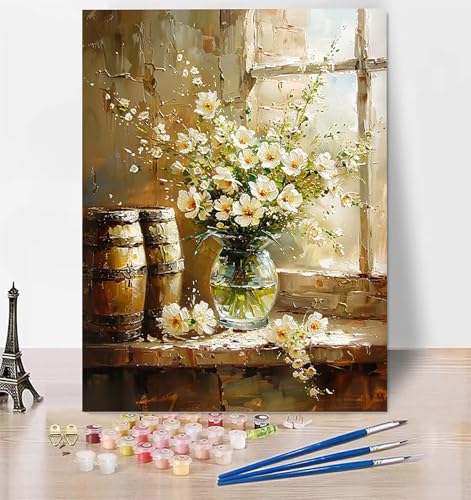 Towonshy Måla efter siffror för vuxna 40 x 50 cm – gör-det-själv akrylfärger set med duk och penslar – avkopplande konstprojekt för hemmet – perfekt som present (blomma i en vas)