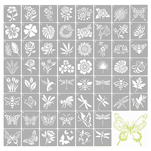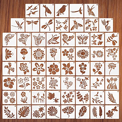 60 stycken blommor stenciler litet målningsset, naturliga växter blomma blad insekter ritning målningsmallar mall återanvändbara plastmallar för stenar måla trä golv möbler vägg dekoration