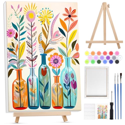 EFOTIML Måla efter siffror-kit för vuxna nybörjare och barn i åldrarna 8-12, 1-pack 40 x 50 cm Canva för målningskit för vuxna i färgglad låda (utan ram) – vaser och blommor