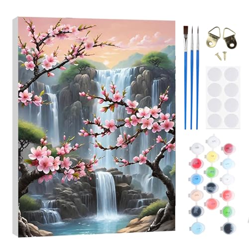 RICUVED Gör-det-själv vattenfall målning efter siffror set för vuxna barn med träram – blomma oljemålning för nybörjare, måla med nummerkits, perfekt presentidé och väggdekoration 20 x 30 cm