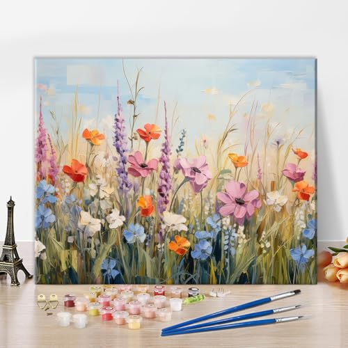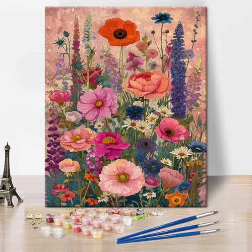 TISHIRON måla efter siffror blommor, färgglada blommande blommor efter siffror konstverk måla efter siffror kit fält trädgård måla efter siffror för vuxna nybörjare väggdekoration akrylfärger 40 cm x