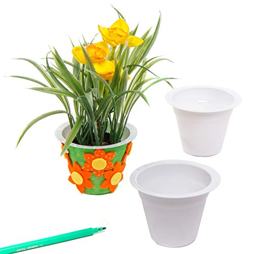 Vita plastblomkrukor storlek 6,5 cm för barn att måla, dekorera och plantera med blommor för presenter (paket med 10)