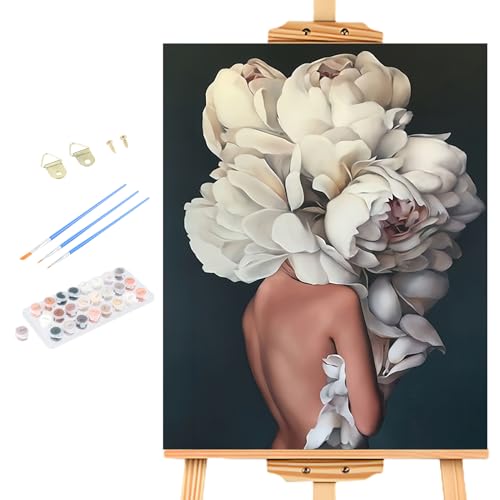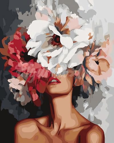 Tucocoo Måla efter nummer, motiv med kvinnohuvud av blommor, i modern stil, akryl, oljemålning-set, fin heminredning, måla efter siffror, perfekt för vuxna/nybörjare, utan ram – 40 x 50 cm