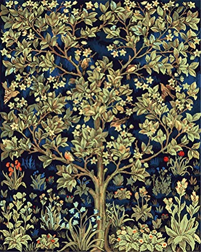Awesocrafts Måla efter siffror-kit, livets träd av William Morris, fåglar blommor träd nummermålning för vuxna 40 x 50 cm (Livets träd, ingen ram)