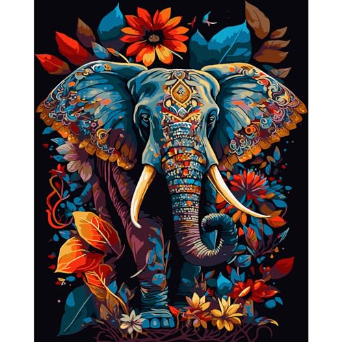 HEIBAGO Djur måla efter siffror för vuxna, landscpes oljemålningskit för vuxna nybörjare, gör-det-själv måla efter siffror på duk blommor konst hantverk för heminredning 40 x 50 cm (ramlös) (elefant)