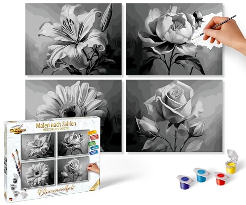 Schipper 609340919 måla efter siffror – olika blommor – måla bilder för vuxna, inklusive borstar och akrylfärger, Quattro 18 x 24 cm vardera