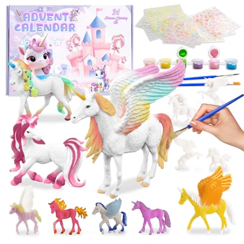 Adventskalender 2025, 24 dagar målning enhörning adventskalender 2025 barn, kreativ enhörning målning set för att själv måla dina egna set, utmärkta julklappar adventskalender för barn