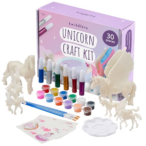 THE TWIDDLERS - Måla Din Egen Enhörning, Målningskit med Kreativa Färgglada Glitters & Klistermärken - Konst & Hantverk för Barnkalas, Presentset för Flickor