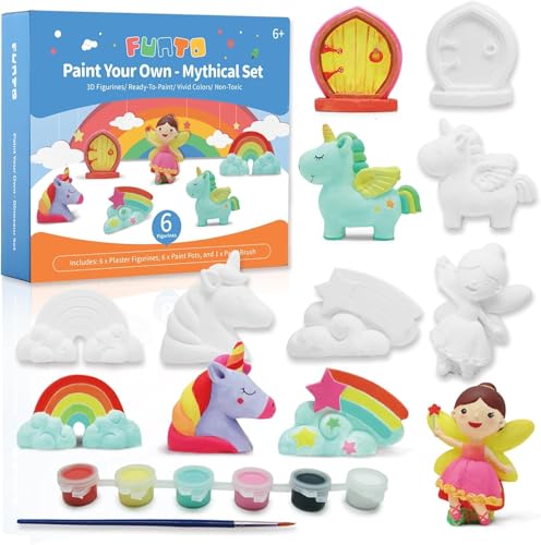 Funto Måla Din Egna Enhörning Målningssät, Konst- och Hantverkssät, STEAM-projekt Kreativt Aktivitet DIY-Leksaker, med 6 Figuriner, 6 Färgburkar, 1 Pensel