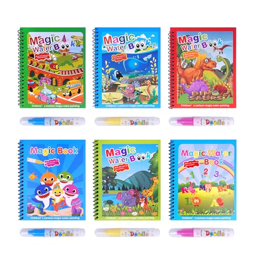 Realjoy 6 stycken återanvändbara vattenmålarbok med 6 målarbok vattenpenna, vattenmålarbok, måla med vatten reseleksaker, målarbok med vattenpenna, presenter till barn