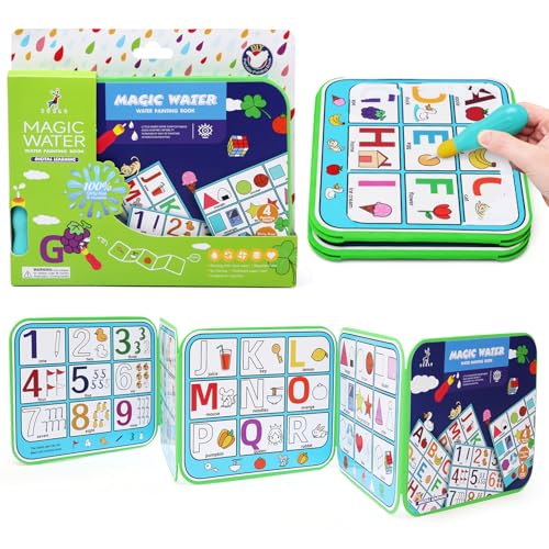 LinStyle Vattenmålarbok, magisk vattenritning bok med vattenpenna, återanvändbara vattenmålarböcker magiska målarboker, måla med vatten reseleksak för 3 4 5 6 år gamla barnpresenter