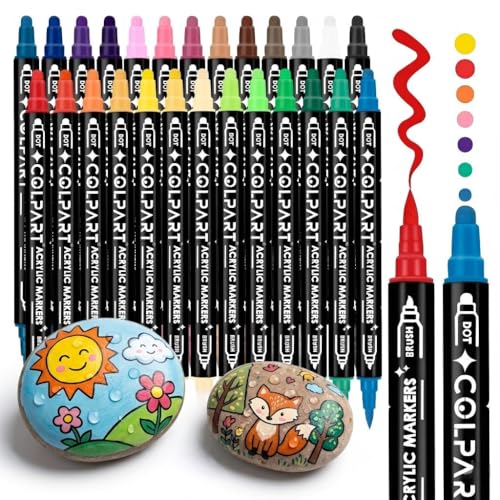 Akrylpennor för stenar vattentäta, akrylfärger pennor, 48 pennor dubbla spetsar akrylfärger pennor stenar måla set, akrylfärger för stenar trä, glas, duk, sten, tyg, gör-det-själv fotoalbum, keramik