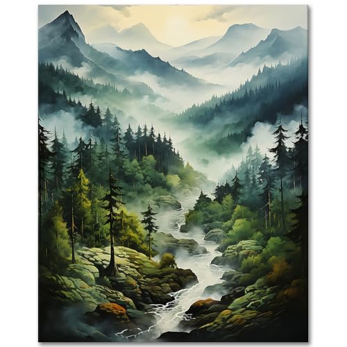 TISHIRON Gör-det-själv målning efter siffror vuxna skogslandskap, måla efter siffror byggsats berg, akrylmålning byggsatser för vuxna träd, oljemålning för vuxna konsthantverk 40 x 50 cm (ramlös)