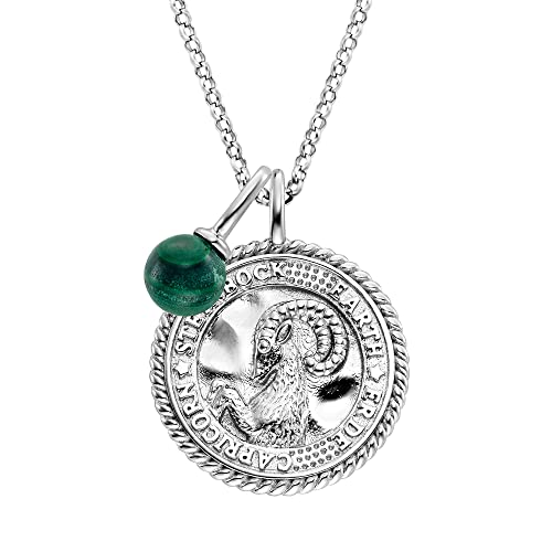 Engelsrufer Damen Halskette aus Sterling Silber und Sternzeichen Steinbock Anhänger - besetzt mit 4 Zirkonia Steinen und einem grünen Malachit Stein Anhänger - Länge: 50cm