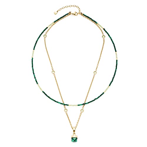 Leonardo Jewels Halskette Valea für Damen aus Edelstahl mit Malachit in der Farbe Grün und Gold mit Karabinerverschluss, Länge: 45 cm, 021767