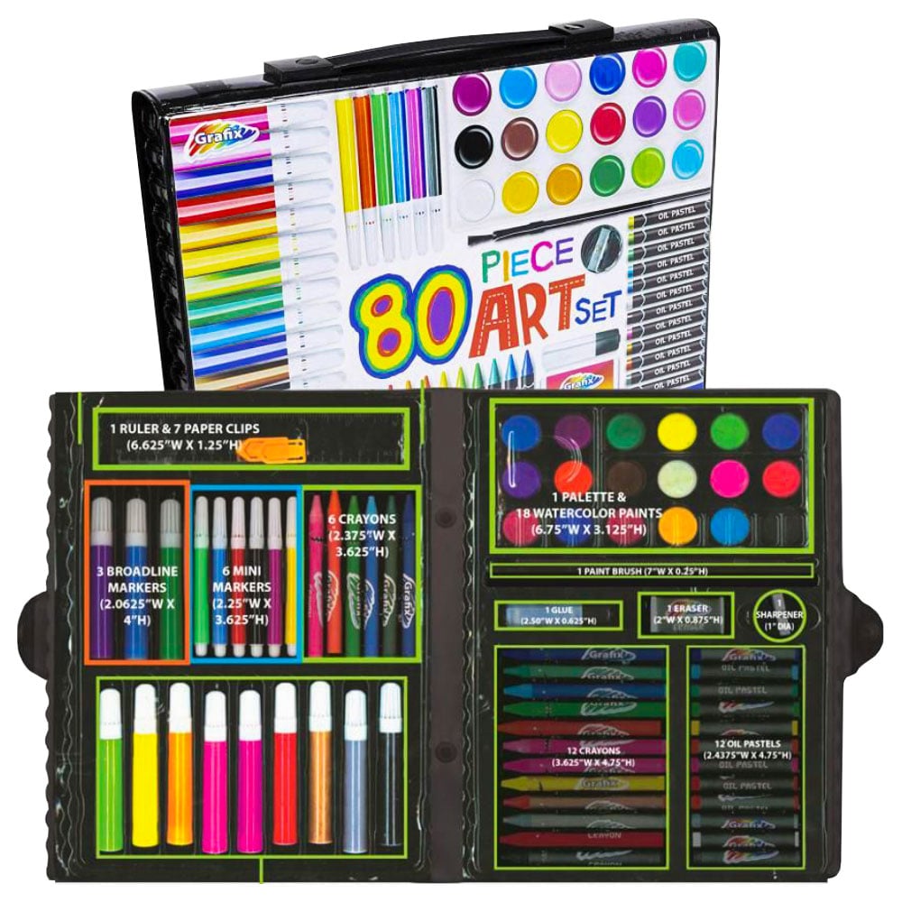 MIAOKE Målarlåda med 168 delar, ritlåda för barn – med färgpennor, kritor, pastellfärger, akvarellpalett, radergummi, pennvässare, HB-penna, 18-sidigt skissblock