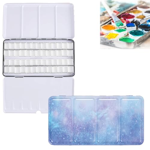 Tom akvarellpalett målarlåda akvarelllådor, palett färglåda med 52 st halva stekpannor, vattenmålningslåda för våta paletter, akvarellfärg, gynnnmålning, gör-det-själv-konst – stora stjärnor 22 x 11