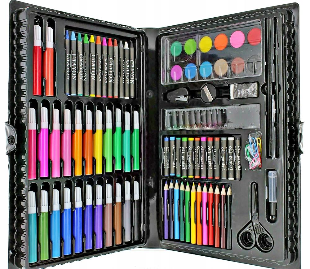 ISO TRADE målarlåda för barn 258 TLG ritset – inkl. Vaxpennor, vattenfärger, pasteller, filtpennor, penslar, suddgummi, pennor i en praktisk målarväska 8643