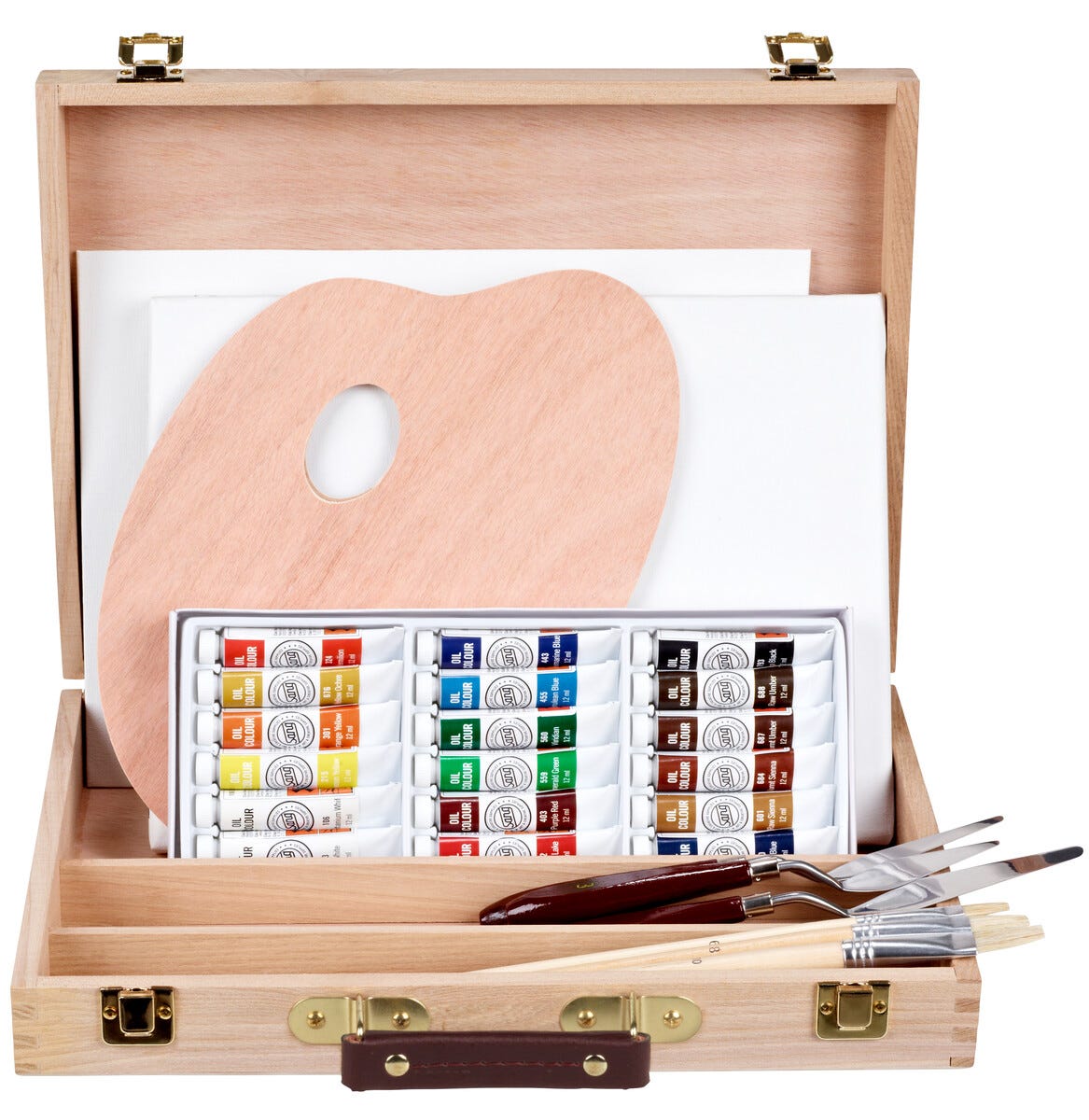 Praktisk målarlåda för transport och förvaring – tillverkad av alm