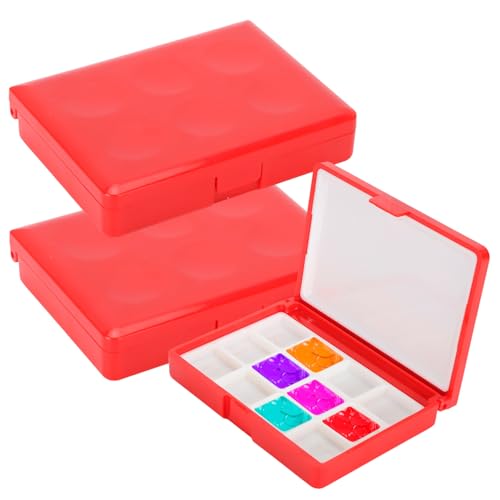 Tom akvarelllåda, 2 st akvarellpalettlåda Tom akvarellburkar Palett Målarlåda Måla Plast Förvaringspaletter Låda för akvarellhalvpannor Akryl (Röda 12 rutnät)