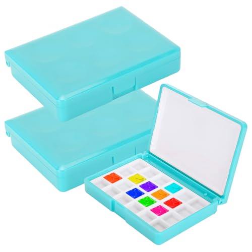 Tom akvarelllåda, 2 st akvarellpalettlåda Tom akvarellburkar Palett Målarlåda Måla Plast Förvaringspaletter Låda för akvarellhalvpannor Akryl (Blå 24 rutnät)