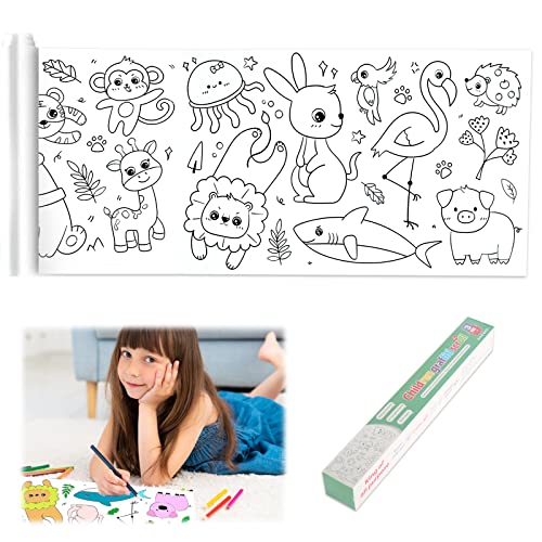 CAINCAY Skärbar ritrulle för barn, målarrulle för barn, Graffy Roll att måla, målarrulle för barn, ritpapper, pappersrulle, målning, barn, målarpapper, rulle för barn (djurvärld)