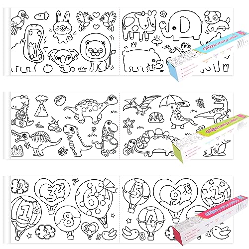 Towviy 3 rullar målarpapper rulle för barn med teckning, bokstäver siffror djur dinosaurier målarpapper konst målning tidigt pedagogiska målarleksaker (prinsessa)