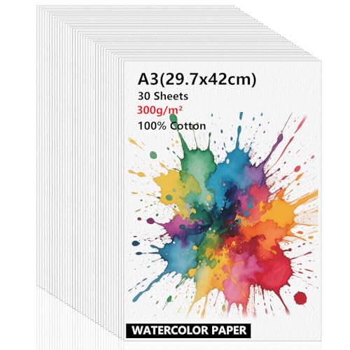 Atliberswo 30 ark akvarellpapper A3 300g, ritblock DIN A3, akvarellpapper, akvarellpapper målarpapper för akvarell akryl gouache teckning konst DIY