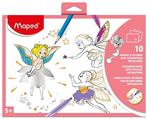 Maped - Målaraktiviteter - Målarpapper - Mönster med metalldekoration - Glansig effekt - 10 olika illustrationer