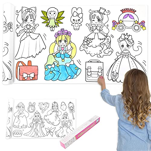 OFFCUP Ritpappersrulle, 3 m färgrulle för barn, ritningsrulle för barn, målarpapper för småbarn, gör-det-själv-klippt och klistra in målningspapper för flickor och pojkar (prinsessa)