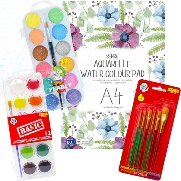 Målarset Akvarell för barn - Färger, Penslar och Papper, Sense
