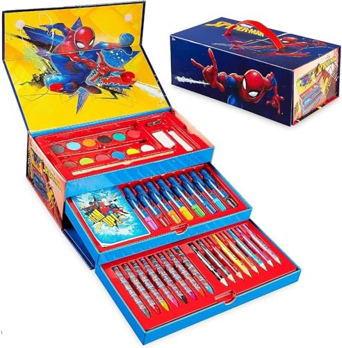 Spiderman målarväska för barn med markörer med 52 stycken, kritor, ritning och målning kit