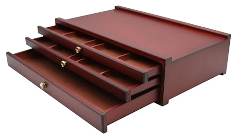 Padua Målarväska konstnärsredskap väska förvaringslåda av glaserat bokträ med 3 lådor – tom – 40 x 24 x 10,5 cm – Perfekt för färger, borstar, pennor och konstnärstillbehör