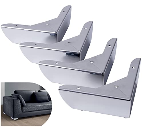 IPEA Möbel- och sofffötter med MALIBU hörnform – set med 4 metallben, hörndesign, fötter för fåtöljer, skåp, sängar – kromfärg – bas – höjd 50 mm
