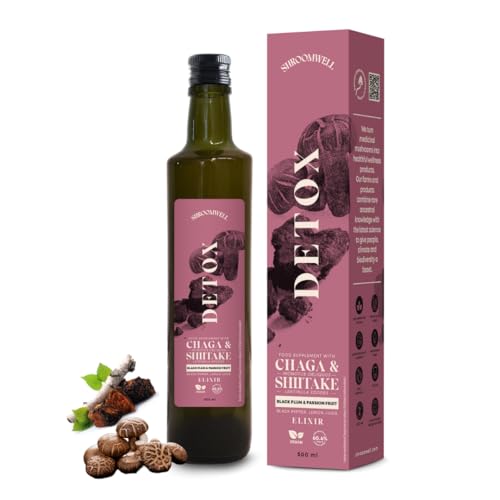 Chaga DETOX Elixir Black Plum & Passion Fruit 500ml_med Ingefära, Shiitake, Chaga (Sprängticka), Worm Wood (Malört), Yarrow Flowers (Achillea millefolium) – Främjar matsmältningshälsa och immunstöd