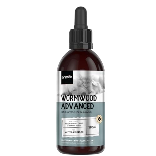 animigo avmaskningsmedel katt & hund - 120ml droppar - 1+ års förbrukning - avmaskningsmedel med malört - alternativ till tabletter - avmaskningsmedel för mag- och tarmhälsa - naturliga ingredienser
