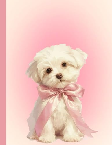 Coquette Pink Maltese Dog Journal Notebook – Cute Aesthetic Writing Notebook with 120 Ruled Pages | Large 8.5” x 11” Matte Cover