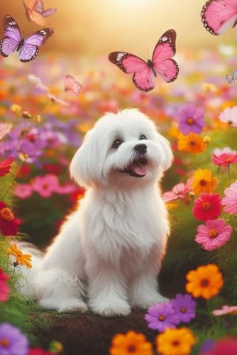 Maltese Dog in a field of colorful flowers Notebook - Large 6 x 9 inches - 127 Pages