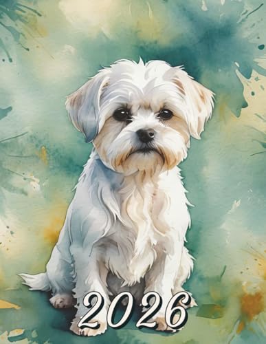 2026: Large Monthly Calendar Planner – Watercolor Maltese Dog