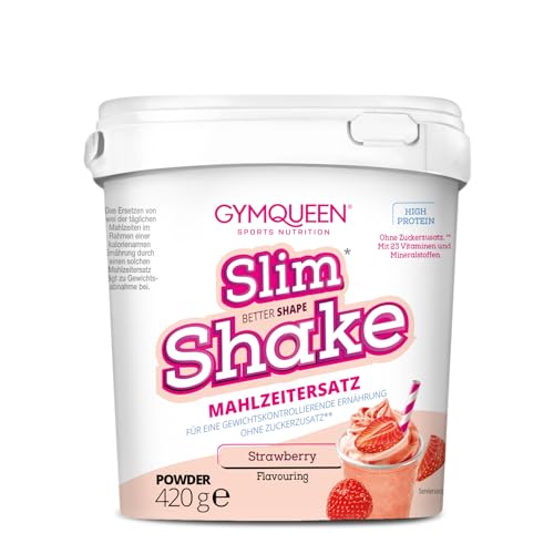 GymQueen Slim Queen Viktminskning Shake 420g, Läcker bantningsshake för enkel viktminskning, måltidsersättning med viktiga vitaminer och näringsämnen, inget tillsatt socker, Jordgubbar