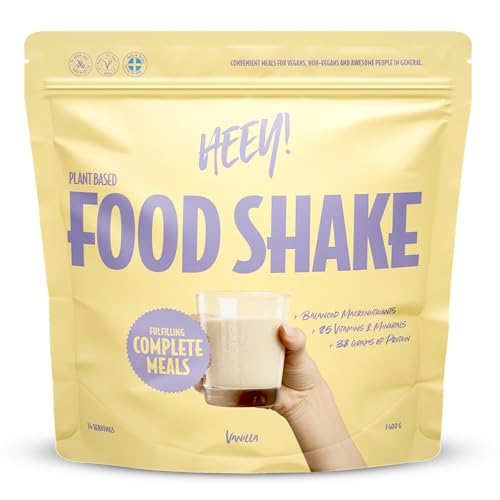 Heey! Vegansk Måltidsersättning Food Shake, 35g Protein per portion, 25 viktiga vitaminer och mineraler, Flera goda smaker, 100% vegansk (1,4 kg, Vanilj)