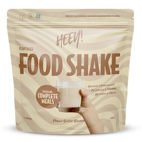 Heey! Vegansk Måltidsersättning Food Shake, 35g Protein per portion, 25 viktiga vitaminer och mineraler, Flera goda smaker, 100% vegansk (1,4 kg, Jordnötssmör Banan)