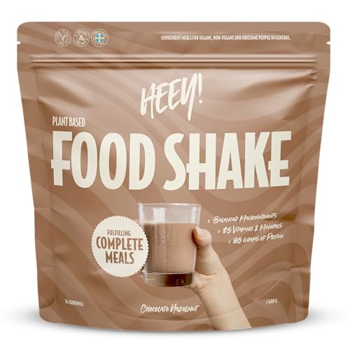 Heey! Vegansk Måltidsersättning Food Shake, 35g Protein per portion, 25 viktiga vitaminer och mineraler, Flera goda smaker, 100% vegansk (1,4 kg, Choklad Hasselnöt)