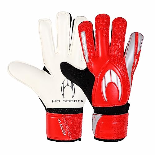 HO Soccer TR Hard Flat Fire Red Målvakt handskar, Unisex barn, Röd/Silver, 3,5