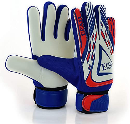 EFAH Fotboll målvaktshandskar för pojkar barn vuxna fotbollsmålvaktshandskar skydd supergrepp palmer (blå/vit, storlek 4 passar för 6 till 9 år)