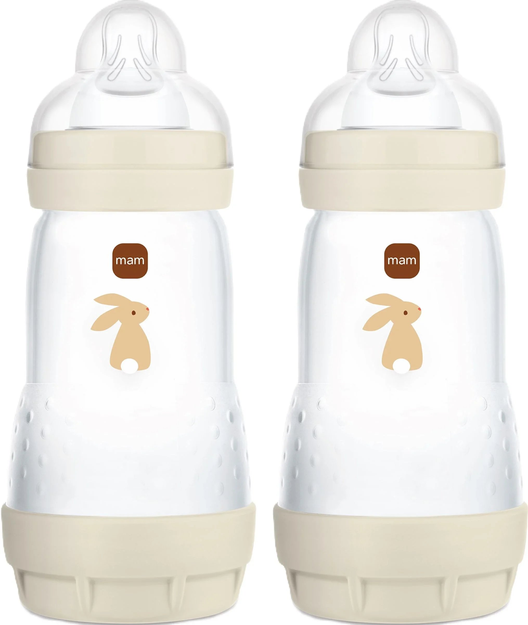 MAM Easy Start Anti-Colic babyflaska i en uppsättning om 2 (160 ml), särskilt väl accepterad mjölkflaska, babyvattenflaska med golvventil mot kolik och nappstorlek 1, 0+ månader, rådjur