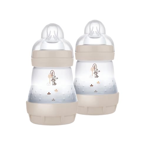 MAM Easy Start Anti-Colic babyflaska i en uppsättning om 2 (160 ml), särskilt väl accepterad mjölkflaska, babyvattenflaska med golvventil mot kolik och nappstorlek 1, 0+ månader, rådjur