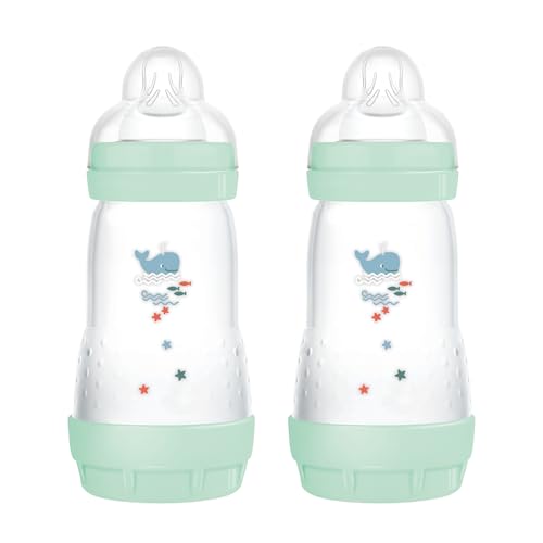 mam - Easy Start Anti-Colic Flaska 2+ månader medium flöde (260 ml) Ocean - Flaska för att minska kolik och obehag för barnet - amningsvänlig babyflaska