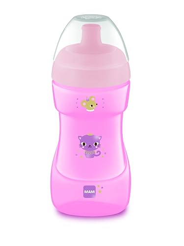 MAM Lärande mugg, från 12 månader, 330 ml, med sportigt hårt munstycke med avtagbar ventil som inte läcker, lätt att greppa tack vare sin halkfria och böjda design, rosa, 1-pack