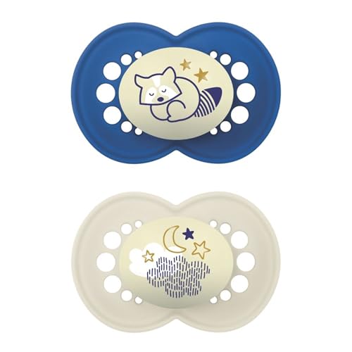 MAM Perfect Night S211 napp med ultramjuk silikondammsugare, för spädbarn från 16 månader, lyser i mörkret, med självsteriliserande låda, neutral, 2 stycken (1 st.)